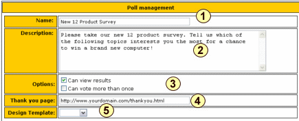 Now here's the fun part! This is where you enter your survey questions and answers, specify your "thank you page" and choose the type of design you want for your survey.