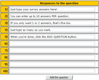 When you're done you just repeat the process for any other questions you want to add. You can enter up to 15 different questions with 10 answers each.
