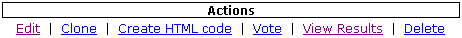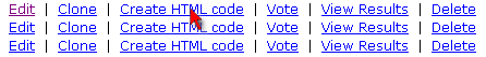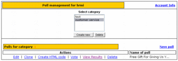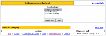 Any polls you've created in that category will be visible at the bottom and in one click you can edit surveys, clone surveys, create the HTML code to post to your website, test your survey, view results or delete unwanted or old surveys.
